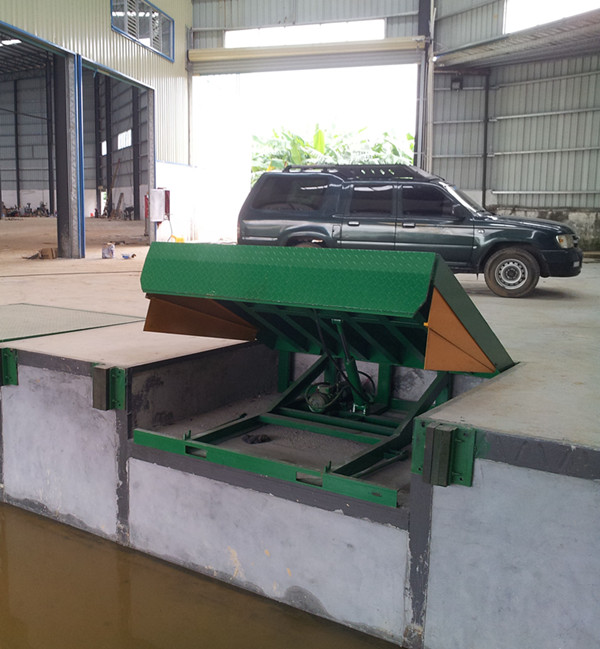 通過動力系統,大油缸升起整個斜板,至頂位時,小油缸開始工作,順暢伸出活頁搭板, 高度調節板全部采用濟南濟鋼優質高度花紋鋼板及型材緊密焊接,壽命長久。